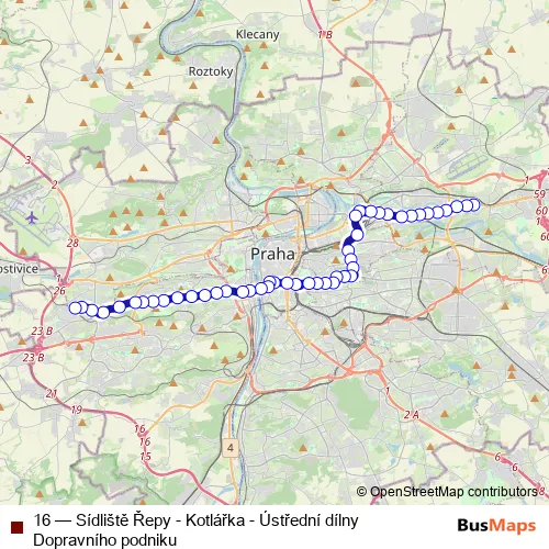 Sídliště Řepy. 16 (Sídliště Řepy - Kotlářka - Ústřední dílny Dopravního podniku) is operational during everyday.
