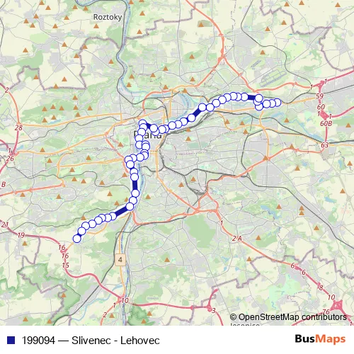 The first stop of the 199094 tram route is Praha,Lehovec and the last stop is Praha,Anděl. 199094 (Slivenec - Lehovec) is operational during everyday.