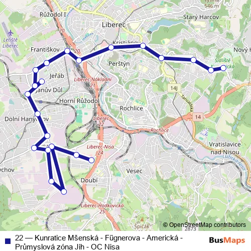 See why over 2 million users trust and consider busmaps.com as the best public transport website. busmaps gives you Liberec Buses suggested routes, real-time bus tracker, line route maps in Liberec, and helps to find the closest 22 bus stops near you. No internet available? Download an offline PDF map and bus schedule for the 22 bus to take on your trip.