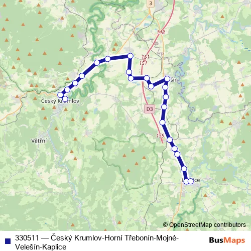 Click here to view the nearest 330511 - Český Krumlov-Horní Třebonín-Mojné-Velešín-Kaplice bus stop.
