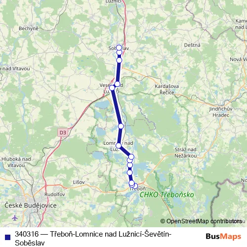 Click here to view the nearest 340316 - Třeboň-Lomnice nad Lužnicí-Ševětín-Soběslav bus stop.