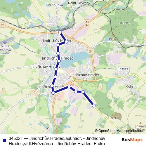 Bus 345021 - Jindřichův Hradec,aut.nádr. - Jindřichův Hradec,sídl.Hvězdárna - Jindřichův Hradec, Fruko in Jindrichuv Hradec: Stops & Timetable