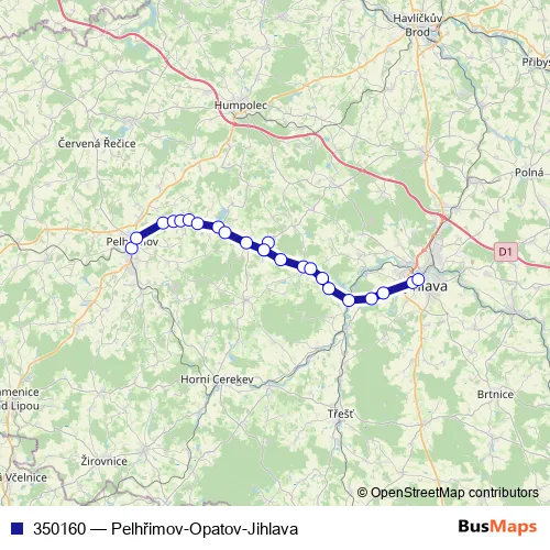 Click here to view the nearest 350160 - Pelhřimov-Opatov-Jihlava bus stop.