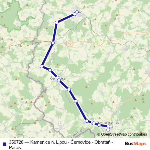 Click here to view the nearest 350728 - Kamenice n. Lipou - Černovice - Obrataň - Pacov bus stop.