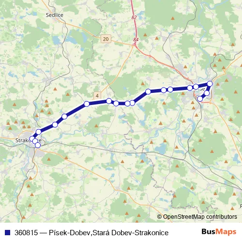 Click here to view the nearest 360815 - Písek-Dobev,Stará Dobev-Strakonice bus stop.