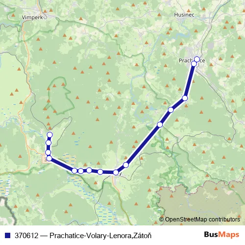 Click here to view the nearest 370612 - Prachatice-Volary-Lenora,Zátoň bus stop.