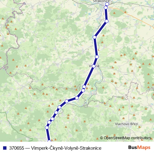 Click here to view the nearest 370655 - Vimperk-Čkyně-Volyně-Strakonice bus stop.