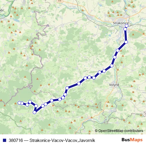 Bus 380716 - Strakonice-Vacov-Vacov,Javorník in Vacov: Stops & Timetable