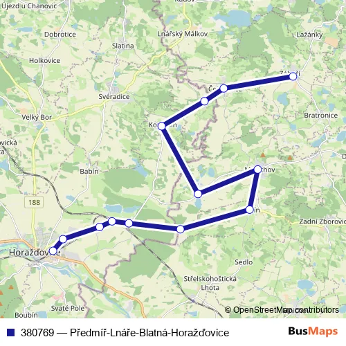 Click here to view the nearest 380769 - Předmíř-Lnáře-Blatná-Horažďovice bus stop.