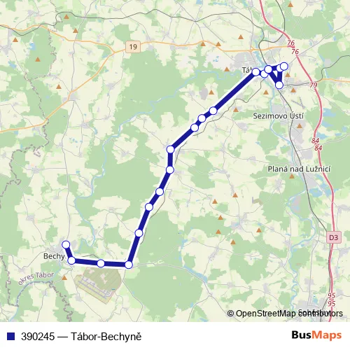 Bus 390245 - Tábor-Bechyně in Tabor: Stops & Timetable