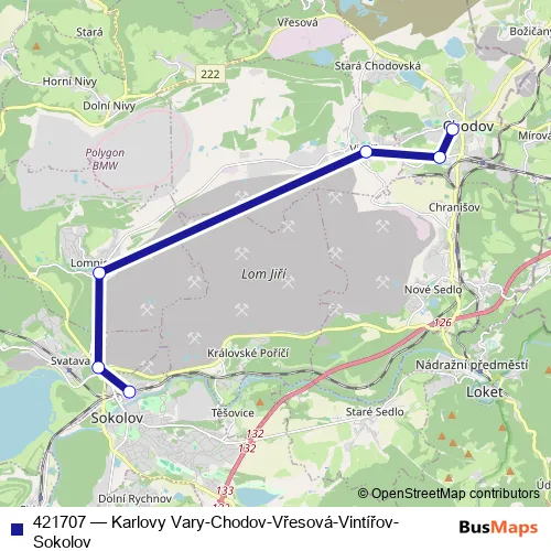 Click here to view the nearest 421707 - Karlovy Vary-Chodov-Vřesová-Vintířov-Sokolov bus stop.