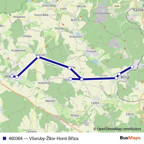 Click here to view the nearest 460364 - Všeruby-Žilov-Horní Bříza bus stop.