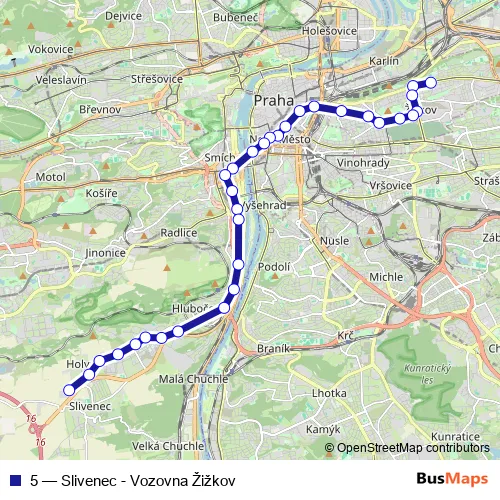 See why over 2 million users trust and consider busmaps.com as the best public transport website. busmaps gives you Prague Trams suggested routes, real-time bus tracker, line route maps in Prague, and helps to find the closest 5 tram stops near you. No internet available? Download an offline PDF map and bus schedule for the 5 tram to take on your trip.