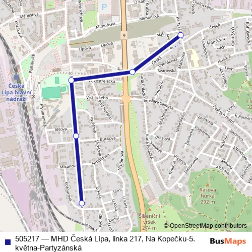 Bus 505217 - MHD Česká Lípa, linka 217, Na Kopečku-5.května-Partyzánská: Full Schedule in Ceska Lipa