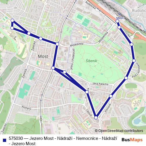 Bus 575030 - Jezero Most - Nádraží - Nemocnice - Nádraží - Jezero Most: Full Schedule in Most