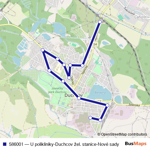Click here to view the nearest 586001 - U polikliniky-Duchcov žel. stanice-Nové sady bus stop.