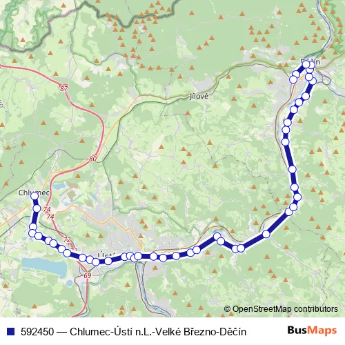 Click here to view the nearest 592450 - Chlumec-Ústí n.L.-Velké Březno-Děčín bus stop.