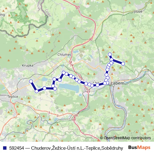 Click here to view the nearest 592454 - Chuderov,Žežice-Ústí n.L.-Teplice,Sobědruhy bus stop.