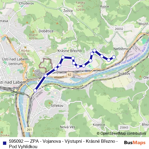 Bus 595092 - ZPA - Vojanova - Výstupní - Krásné Březno - Pod Vyhlídkou Schedule in Usti nad Labem