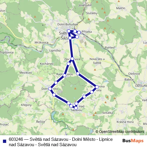 Click here to view the nearest 603246 - Světlá nad Sázavou - Dolní Město - Lipnice nad Sázavou - Světlá nad Sázavou bus stop.