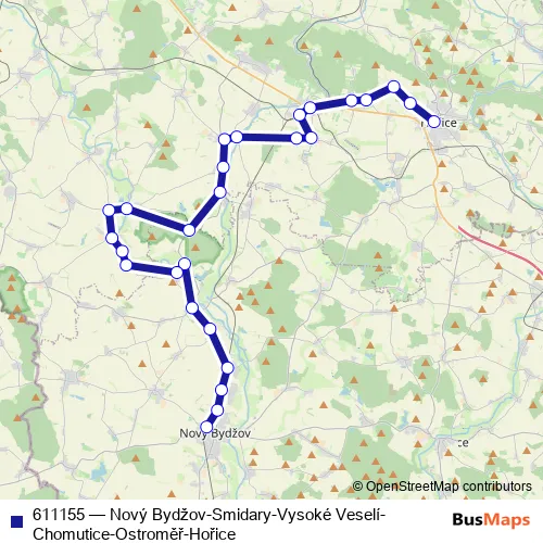 Click here to view the nearest 611155 - Nový Bydžov-Smidary-Vysoké Veselí-Chomutice-Ostroměř-Hořice bus stop.
