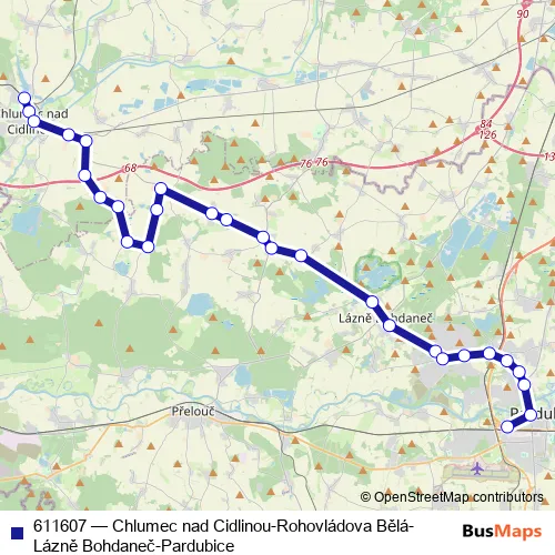 Click here to view the nearest 611607 - Chlumec nad Cidlinou-Rohovládova Bělá-Lázně Bohdaneč-Pardubice bus stop.