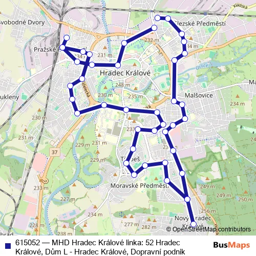 Bus 615052 - MHD Hradec Králové linka: 52 Hradec Králové, Dům L - Hradec Králové, Dopravní podnik in Hradec Kralove: Stops & Timetable