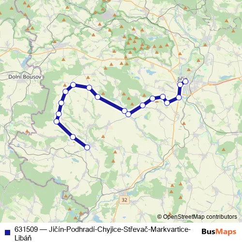 Click here to view the nearest 631509 - Jičín-Podhradí-Chyjice-Střevač-Markvartice-Libáň bus stop.