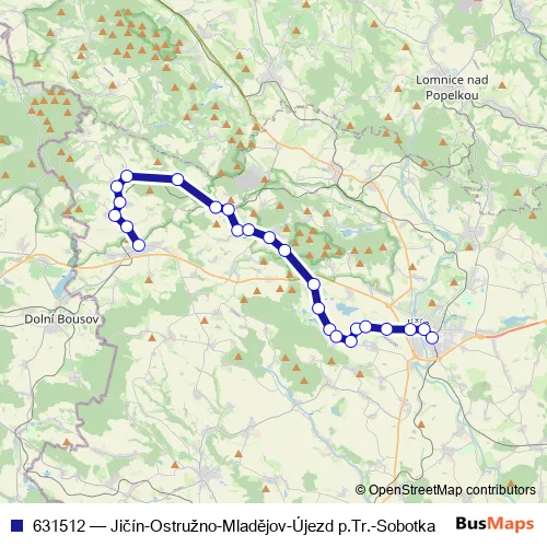 Click here to view the nearest 631512 - Jičín-Ostružno-Mladějov-Újezd p.Tr.-Sobotka bus stop.