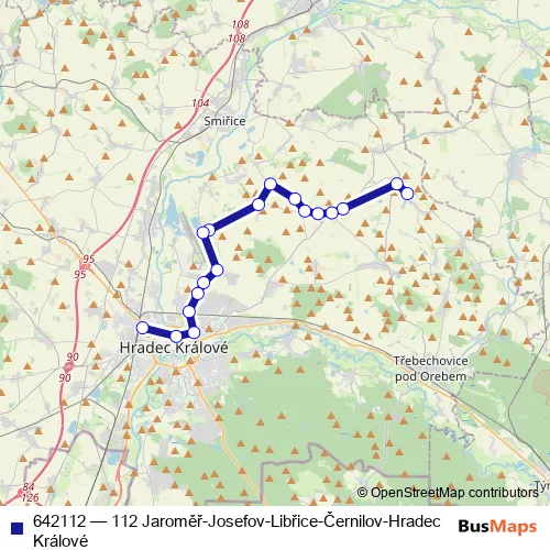 Bus 642112 - 112 Jaroměř-Josefov-Libřice-Černilov-Hradec Králové: Full Schedule in Hradec Kralove