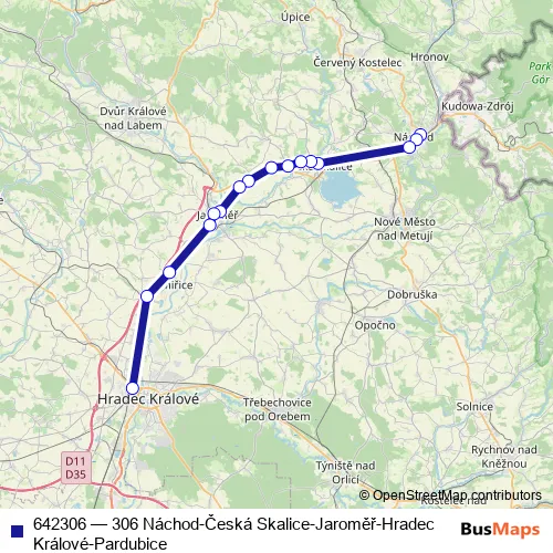 Click here to view the nearest 642306 - 306 Náchod-Česká Skalice-Jaroměř-Hradec Králové-Pardubice bus stop.