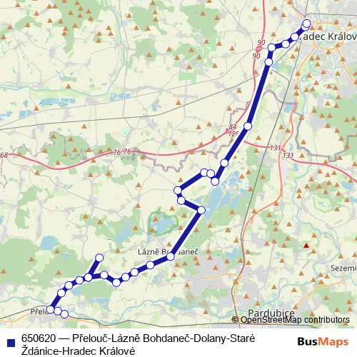 Click here to view the nearest 650620 - Přelouč-Lázně Bohdaneč-Dolany-Staré Ždánice-Hradec Králové bus stop.