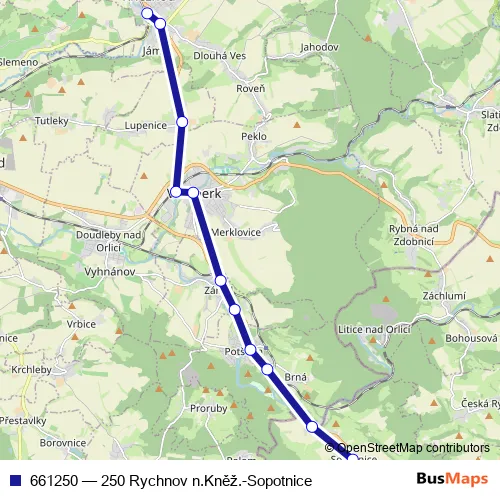 Bus 661250 - 250 Rychnov n.Kněž.-Sopotnice in Vamberk: Stops & Timetable