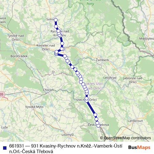 Click here to view the nearest 661931 - 931 Kvasiny-Rychnov n.Kněž.-Vamberk-Ústí n.Orl.-Česká Třebová bus stop.