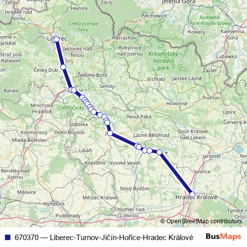 Bus 670370 - Liberec-Turnov-Jičín-Hořice-Hradec Králové in Hradec Kralove: Stops & Timetable