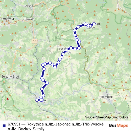 Click here to view the nearest 670951 - Rokytnice n.Jiz.-Jablonec n.Jiz.-Tříč-Vysoké n.Jiz.-Bozkov-Semily bus stop.