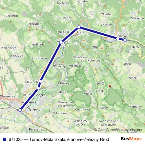 Click here to view the nearest 671035 - Turnov-Malá Skála,Vranové-Železný Brod bus stop.