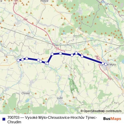 Click here to view the nearest 700703 - Vysoké Mýto-Chroustovice-Hrochův Týnec-Chrudim bus stop.