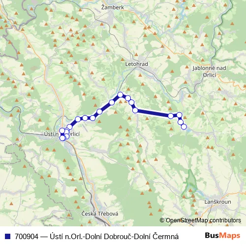 Click here to view the nearest 700904 - Ústí n.Orl.-Dolní Dobrouč-Dolní Čermná bus stop.