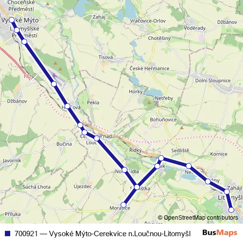 Click here to view the nearest 700921 - Vysoké Mýto-Cerekvice n.Loučnou-Litomyšl bus stop.