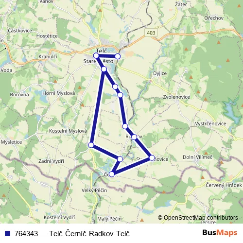 Bus 764343 - Telč-Černíč-Radkov-Telč in Telc: Stops & Timetable