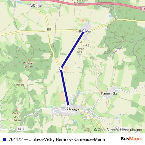 Click here to view the nearest 764472 - Jihlava-Velký Beranov-Kamenice-Měřín bus stop.