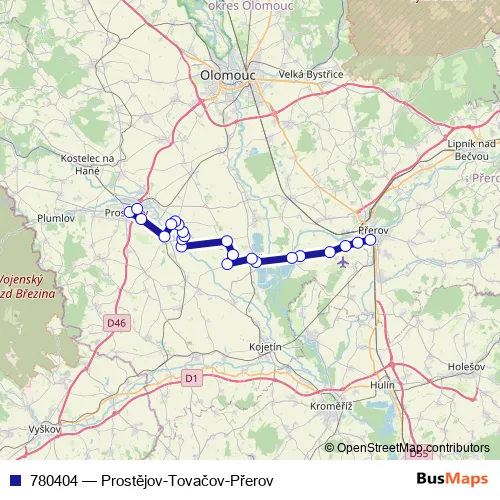 The first stop of the 780404 bus route is Přerov,aut.nádr. and the last stop is Prostějov,aut.st.. 780404 (Prostějov-Tovačov-Přerov) is operational during on weekdays.