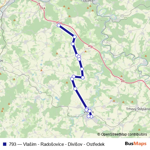 793 Bus - Vlašim - Radošovice - Divišov - Ostředek