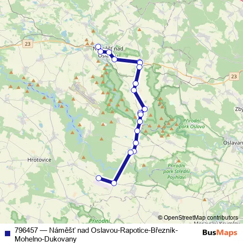 Click here to view the nearest 796457 - Náměšť nad Oslavou-Rapotice-Březník-Mohelno-Dukovany bus stop.