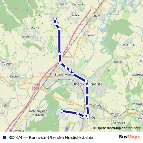 Click here to view the nearest 802374 - Kunovice-Uherské Hradiště-Jalubí bus stop.