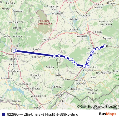 Click here to view the nearest 822995 - Zlín-Uherské Hradiště-Střílky-Brno bus stop.