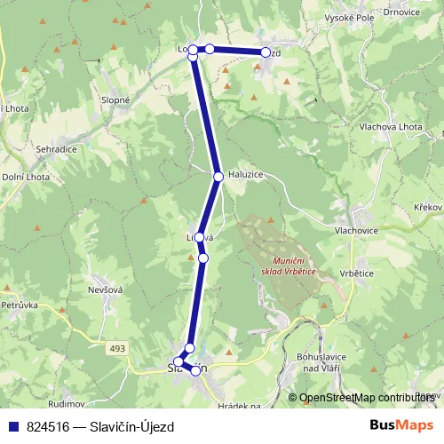 The first stop of the 824516 bus route is Újezd and the last stop is Slavičín,Radnice. 824516 (Slavičín-Újezd) is operational during everyday.