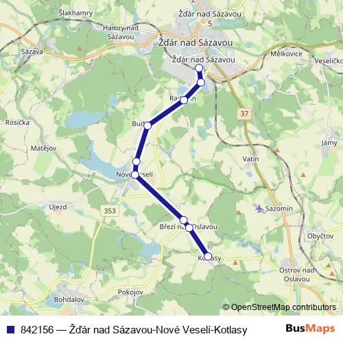 Click here to view the nearest 842156 - Žďár nad Sázavou-Nové Veselí-Kotlasy bus stop.