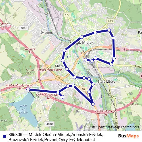 865306 Bus - Místek,Olešná-Místek,Anenská-Frýdek,Bruzovská-Frýdek,Povodí Odry-Frýdek,aut. st